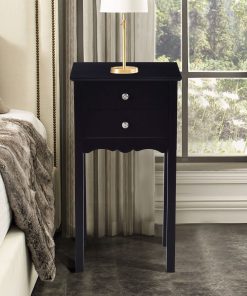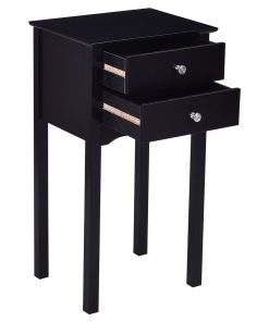 • Elegant 2-Drawer End Table Nightstand Side Table in Black Wood Finish