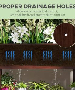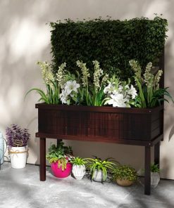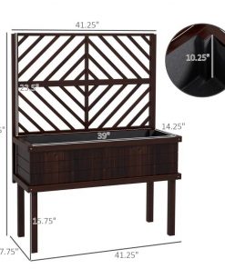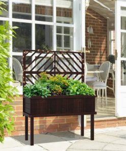 Bring beauty to your backyard with an elegant design and climbing plants. Our outdoor planter has a stylized trellis that allows vines to grow or gives you a place to hang flower baskets and outdoor decor. Excess water can handle itself. Our raised garden box with a trellis features a self-draining design and a non-woven fabric filter. Plants kept in the box will stay fresh, and soil won’t fall away after watering. Our stylized trellis planter is formed out of dark, carbonized fir wood and protected with a waterproof paint that lets the beauty of its wood grain pattern shine through.
