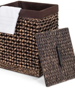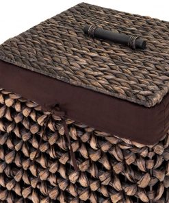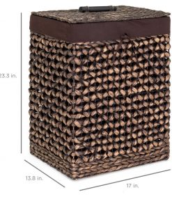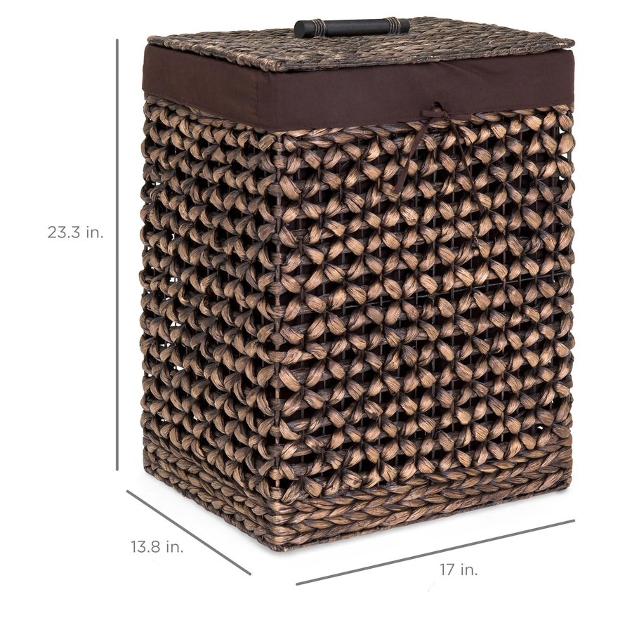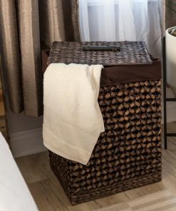 Make your laundry a breeze with this Espresso Handwoven Hyacinth Linen Liner Laundry Hamper. This unique laundry hamper helps keep the room looking neat and organized with a convenient removable lid that keeps laundry out of sight and odors contained. Easily removable linen liner for effortless transportation to the washing machine. Crafted with hand-woven water-hyacinth for an attractive, natural design that maintains its cleanliness.