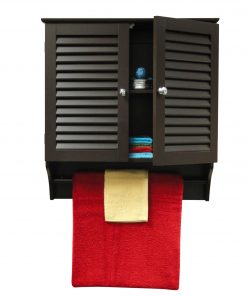 This Espresso Wall Mounted Bathroom Cabinet with Shelves and Towel Bar would be a great addition to your home. It has a convenient two door shutter design in a wall cabinet and is a of MDF wood composite.