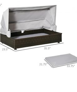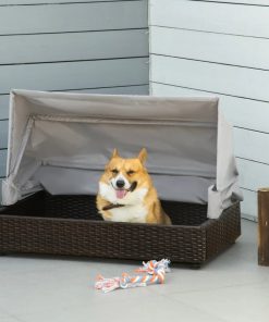 This Espresso Wicker Foldable Canopy Raised Dog Bed House with 2 in Thick Cushion is a perfect resting bed that gives your lovely small/medium dog or cat a space all to their own. Made with PE wicker for strength and is suitable for both indoor and outdoor use. This dog/cat house comes with a foldable roof that protects against rain and sun and includes a soft washable cushion for added comfort. The bottom feet can be adjusted to the appropriate height to adapt to different road surface. Made for small to medium-sized dogs and cats up to 40lbs, recommended for dogs less than 29.5 inches length.