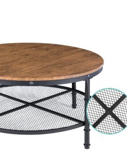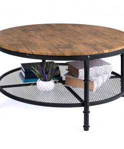 Bring the perfect circle of life to your living room with the FarmHome Industrial Wood Steel Coffee Table 2-Tier Round with Storage Shelves. Designed with a sturdy metal frame and water-resistant surface so you can set down a cup of coffee without hesitation. Designed with non-marking foot glides, this side table prevents scuffs on the floor, indentations, and other potential damages. Built with crossbar support to allow for maximum weight capacity in the two-tier shelves. Second-tier shelf is raised to allow for easy cleaning like vacuuming and robo vacs underneath.