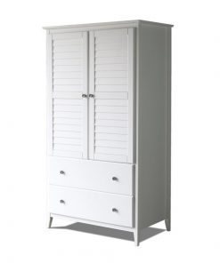 This FarmHome Louvered Distressed White Solid Pine Armoire has what it takes to give your bedroom that refined FarmHome coastal touch. It’s modernized traditional style results in a timeless design, while adding lots of storage with 2 large Louvered doors and two spacious 8 1/4 deep drawers. Made of 100% solid pine wood, this customizable wardrobe features a sturdy construction that can lasts.
