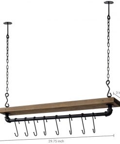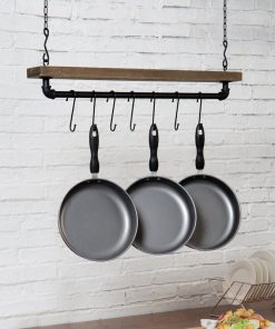 Keep your pots and pans efficiently organized with this FarmHome Rustic Industrial Ceiling Mounted Hanging Pot Rack . Featuring a durable metal construction, the shelf is an excellent place to store your pots and pans, and the included 8 S-hooks are ideal for hanging utensils such as spatulas and ladles. Simply hang this rack from your kitchen ceiling using appropriate mounting hardware , and you will be ready to modernize your kitchen and keep it clutter-free.