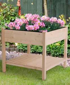 Our FarmHome Square Fir Wooden Raised Garden Planter Box bed brings an organic natural look to your outdoor garden. Ideal for small patios, decks, balconies, condos, and apartments, and more. This solid fir wood construction makes this raised garden bed perfect for long term use, as the wood is strong and stable with natural weather-fighting properties. The raised garden box lets you garden in comfort alleviating the need to bend or stoop while protecting your plants from uninvited guests. Non-woven fabric inner bag provides good air permeability and prevents soil erosion to help your plants grow. Finally, the bottom has a storage shelf for your gardening tools and kits. With this smart plant bed, you can start to grow tomatoes, vegetables, herbs, or your favorite flowers anywhere!