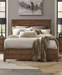 The FarmHome Walnut Solid Pine Platform Bed in Queen Size blends contemporary and traditional farmhouse styles that make it feel familiar, yet bold. The finish is designed to accentuate the unique grain and natural texture in the wood panels. Made of 100% solid pine wood, this bed features a sturdy construction that can last for years.