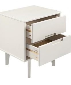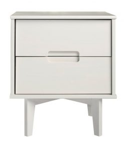 This FarmHouse 2 Drawer Solid Wood Nightstand white will add a stylish finish to your bedroom with the mid-century modern and transitional design. With a stained white finish, featuring angled legs and unique cutout handles that add to the design. Including two deep-storage drawers for putting away books, accessories, and more.
