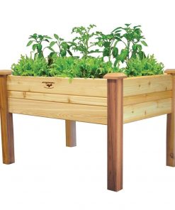 Create an impressive patio garden with the Farmhouse 24-in x 48-in x 31-in Cedar Elevated Victory Garden Bed – Made in USA. The elevated design means you can grow a lush garden without ever bending over. With deep soil depth you can grow healthy plants, herbs, and vegetables. The bed is made out of chemical free and naturally rot resistant North American cedar. It assembles with a rubber mallet using the time tested and proven dovetail design. The bed even comes with a fabric liner. After assembling the Elevated Garden Bed add soil, plants, and sunshine to start growing the victory garden of your dreams.