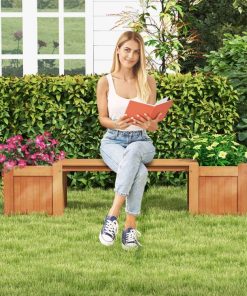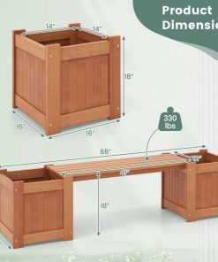 This FarmHouse Hardwood Planter Boxes Garden Bench is crafted with durable shorea hardwood, the garden bench with planter boxes features wear-resistance and high hardness, ensuring long service life. The teak oil finish further enhances its durability, making it resistant to kinds of outdoor weather conditions. Comes with 17″ deep space for plants to spread their roots, you can cultivate saplings, fruits or flowers in the planters as you desire. The open-ended base ensures efficient drainage and allows plants to absorb soil nutrients, promoting healthy root growth. The wood planter box features a built-in bench, providing a lounge spot with 330 lbs weight capacity in your garden