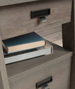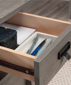 This FarmHouse Light Oak Executive Desk w/ Filing Cabinets Storage offers a spacious top surface that provides you with all the room you need for your must have desk essentials like your laptop, a cup full of pens, stacks of notepads and your favorite coffee mug. You can even find space for home décor items like an accent lamp and picture frames too. This computer desk features 2 small drawers that open and close on smooth metal runners for easy access storage of supplies. It also includes 2 file drawers with full extension slides to hold letter-size hanging files. Other features include a grommet hole for cord access so you can keep all your wires neat and out of the way.
