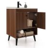 This Farmhouse Modern Bathroom Vanity in Rustic Wooden Finish with White Ceramic Sink is made of Eco-MDF wood for long-lasting durability. Careful Coverage and Eco paint enable durability. Sliding Door Design — Unlike traditional doors, sliding doors feel a sense of fashion. Open space meets various storage requirements. Cabinet: 19″x 24″x 31.5″(D×W× H); Sink dimension: 16.5″ x 5.5″ (W xD); Bowl thickness: 0.5″. Come with Vanity, Glass sink, ORB Faucet, Pop up drain, Hot/ cold lines, and some mounting hardware. Modern and stylish design fit perfectly with most bathroom decor; Easy installation.