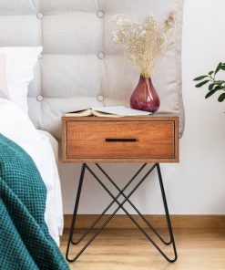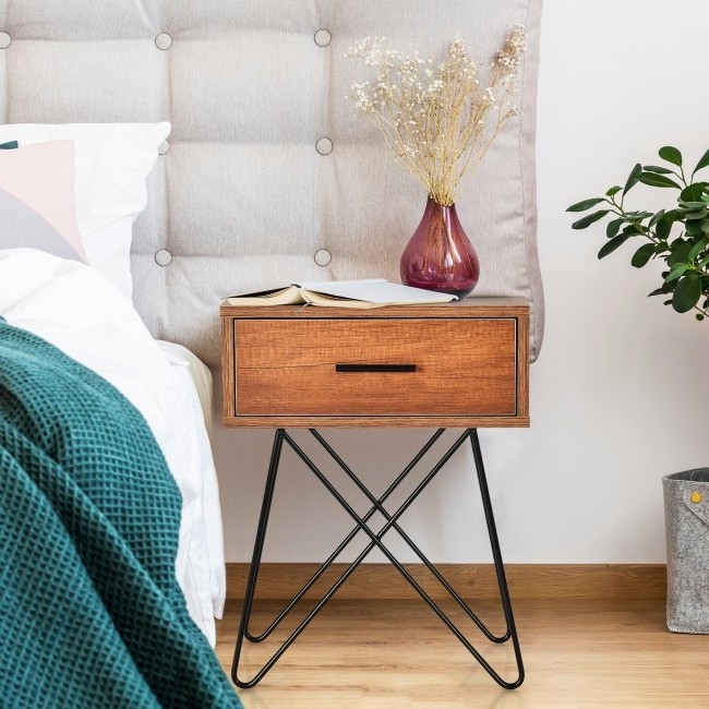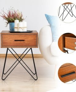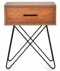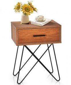 This FarmHouse Rustic Natural Brown 1 Drawer Nightstand Coffee Table is prefect addition to any bedroom/living room. Comes with 2 crossed metal pipe legs. You can this nightstand besides any sofa, bed, table, or chair.
