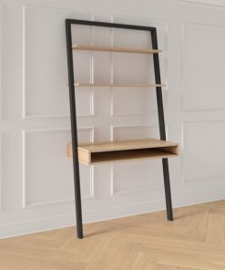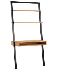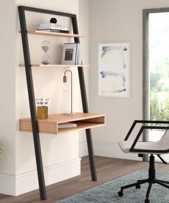 Limited space for your home office? Make your space work smarter with this ultra-efficient Farmhouse Rustic Oak Black Leaning Ladder Writing Desk 2 Shelves. The contemporary lean-to design manages to fit in a writing desk and two shelves while maintaining its barely-there footprint. Crafted from a budget-friendly blend of manufactured and solid wood, the desk has a natural light wood grain that works well with a variety of decor looks.