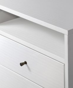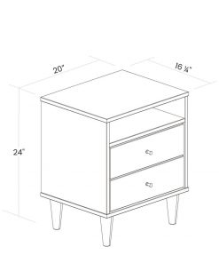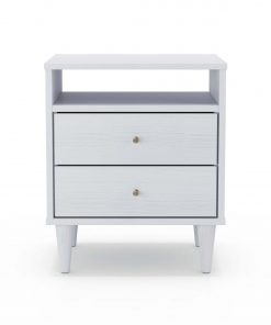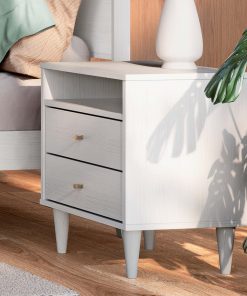 The Farmhouse Rustic White Mid Century 2 Drawer Nightstand showcases the unique levity and simplicity of the mid-century modern style and combines it with durable, high-quality materials. Designed in-house, its details emphasize the functionality and simplicity characteristics of the mid-century modern movement. The mid-century modern dedication to the honest use of materials is reflected in the use of renewable, durable solid wood. The iconic cone shaped legs are built of sturdy eucalyptus wood. Combined with a practical open shelf, the nightstand feels as if it almost floats in the space. This piece’s combination of material quality, high-quality design, and environmental consciousness makes it an addition to your home you can feel confident about.