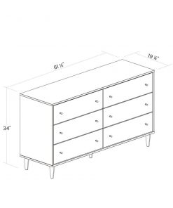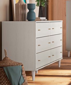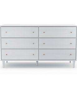 Simple, clean lines for an airy aesthetic and honestly high-quality materials for durability and practicality. This Farmhouse Rustic White Mid Century 6 Drawer Dresser is designed in-house to highlight these principles of mid-century modern design. The iconic cone shaped legs are built of sturdy eucalyptus wood. The simple details of this piece won’t stand out at first, but will complement many modern or contemporary design styles; and a closer look will reveal an honestly high-quality finish.