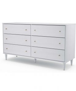 Simple, clean lines for an airy aesthetic and honestly high-quality materials for durability and practicality. This Farmhouse Rustic White Mid Century 6 Drawer Dresser is designed in-house to highlight these principles of mid-century modern design. The iconic cone shaped legs are built of sturdy eucalyptus wood. The simple details of this piece won’t stand out at first, but will complement many modern or contemporary design styles; and a closer look will reveal an honestly high-quality finish.