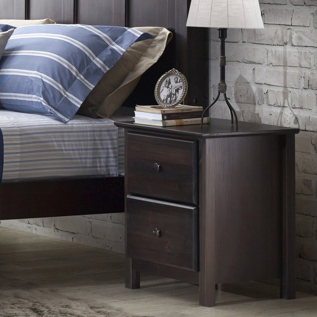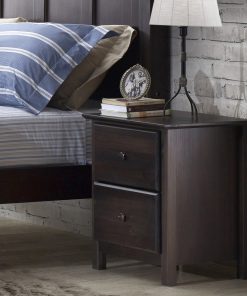 Farmhouse Solid Pine Wood 2 Drawer Nightstand in Espresso