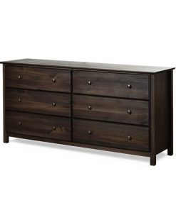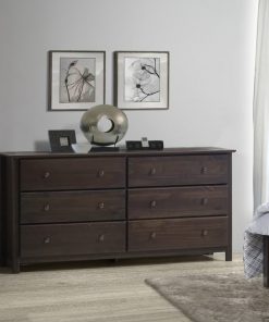 Attractive metal knobs, a rich finish, and elegant style: this luxurious looking Farmhouse Espresso Solid Pine Wood 6 Drawer Dresser has what it takes to give your bedroom that refined touch. Featuring lots of storage with six spacious 6 1/2 deep drawers. Made of 100% solid pine wood, this dresser is built with a sturdy construction that lasts for years.