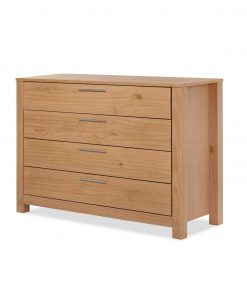 Give your bedroom a modern look with the elegance of this FarmHouse Traditional Rustic Acacia 4 Drawer Dresser. This design has 4 drawers on metal glides and a modern aluminum pull. Made of 100% solid pine wood from Southern Brazil, this dresser features a sturdy construction that can last for years