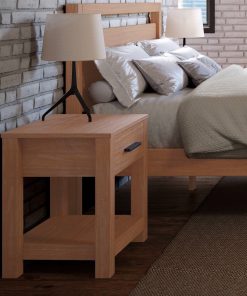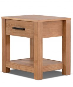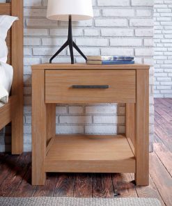 Crafted from 100% solid pine wood, this Farmhouse Traditional Rustic 1 Drawer Nightstand boasts a sturdy construction and modern design, including a low profile, a drawer with metal glides, and an aluminum pull. Sure to last for years, this nightstand provides a modern look to any bedroom.