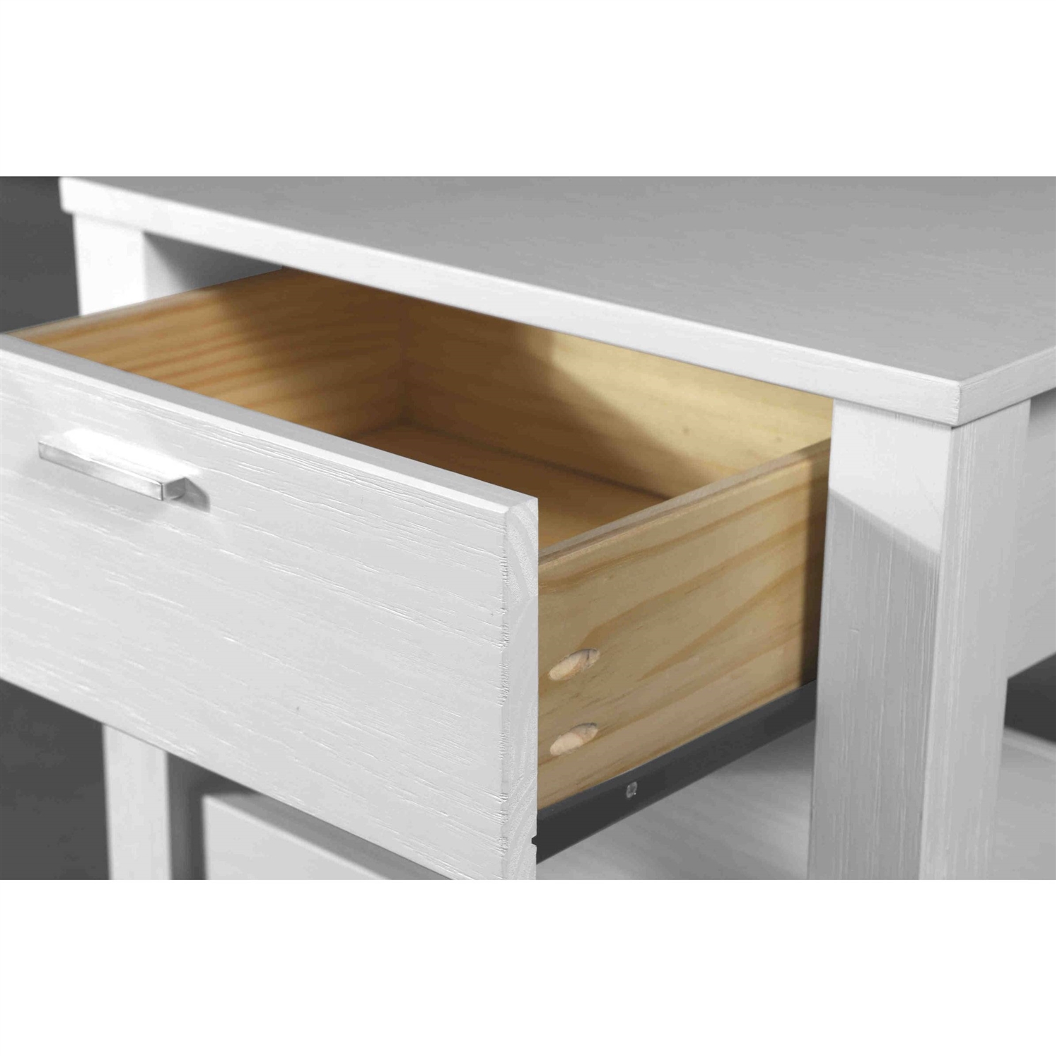 Give your bedroom a modern look with the FarmHouse Traditional Rustic White 1 Drawer Nightstand. This design has a drawer on metal glides and a modern aluminum pull. Made of 100% solid pine wood, this nightstand features a sturdy construction that can last for years.