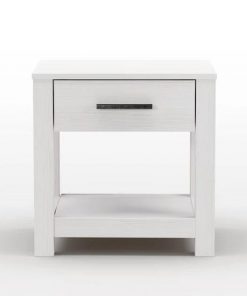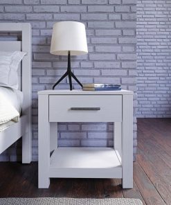 Crafted from 100% solid pine wood, the FarmHouse Traditional Rustic White 1 Drawer Nightstand boasts a sturdy construction and modern design, including a low profile, a drawer with metal glides, and an aluminum pull. Sure to last for years, this nightstand provides a modern look to any bedroom.