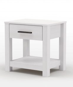 Crafted from 100% solid pine wood, the FarmHouse Traditional Rustic White 1 Drawer Nightstand boasts a sturdy construction and modern design, including a low profile, a drawer with metal glides, and an aluminum pull. Sure to last for years, this nightstand provides a modern look to any bedroom.