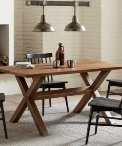 Give your dining room a rustic modern farmhouse look with the warmth of this Farmhouse Walnut Solid Wood Dining Trestle Table. This versatile and neutral design goes well with several chair types, features robust and sturdy wood construction made of 100% solid pine wood from Southern Brazil. Its distressed and rustic finish is very durable and easy to touch-up.