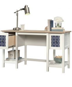 Whether tackling taxes or working on your next big novel, the FarmHouse White Blue Oak Top 2 Drawer Office Writing Desk is here to help. Made in the USA, it showcases two shelves where you can display a few favorite well-thumbed novels or potted plants, while two drawers offer a place to tuck away any loose odds and ends. Awash in a neutral hue, this piece wont clash with your existing color scheme.