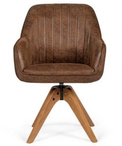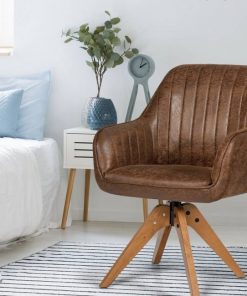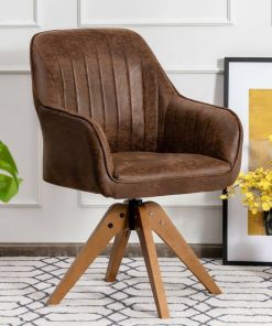 Relax in style with a 360° swivel base this Farmhouse Faux Leather Swivel Accent Chair with Solid Wood Legs – Brown allows you to easily change the sitting direction without leaving the seat. Covered with a unique hot-stamping cloth, the accent chair is more skin-friendly and soft. Covered with PU leather, the modern accent chair is waterproof and easy to clean with a damp cloth. The soft seat is filled with a high-density sponge to provide maximum comfort. Carefully crafted with high-quality beech wood, this PU side chair with a solid structure will provide reliable support with a maximum weight capacity of 330lbs.