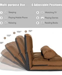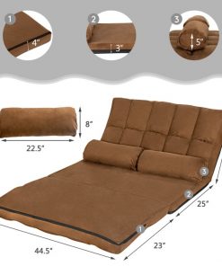This multipurpose Faux Suede 5 Tilt Foldable Floor Sofa Bed Detachable Cloth Cover in Brown has 5 tilt positions with an adjusting range from 90°to 180°. It is very easy for you to find a perfect relaxing position while reading books, watching TV, or playing video games during your leisure time. The surface is made of composite suede, which is not only skin-friendly but also durable enough with the feature of wear-resistance. A soft and cozy seat provides you with a long-period comfortable experience. In addition, 2 soft pillows allow you to relax your neck or lumbar vertebra. Made by a premium steel frame, it is strong enough to support your body. From an upright position to a flat position, it can be served as a sofa or a bed to meet your different requirements. Suede texture makes it look superior and chic, perfectly matching your bedroom, living room, reading room, or balcony.