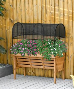 Grow big or go home with the Fir Wood Elevated Outdoor Raised Garden Bed Planter Box with Shade Cover. This sturdy plant stand with slatted design allows excess water to easily drain, keeping your soil fresh, and protects plants from mineral accumulation. Inner flower bed can be lined with included black PE fabric, making it breathable, permeable, and prevent the leakage of your soil. The design of a trapezoidal interior space inside this raised garden bed provide ample space for vegetables, herbs, flowers and any types of plants, which is suitable for your garden, balcony, lawn, or yard. Keep your babies protected with the sun shading net supported by steel pipes, Hpop house style above the planting bed to prevent your plants from being exposed directly to the sun.
