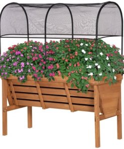 Grow big or go home with the Fir Wood Elevated Outdoor Raised Garden Bed Planter Box with Shade Cover. This sturdy plant stand with slatted design allows excess water to easily drain, keeping your soil fresh, and protects plants from mineral accumulation. Inner flower bed can be lined with included black PE fabric, making it breathable, permeable, and prevent the leakage of your soil. The design of a trapezoidal interior space inside this raised garden bed provide ample space for vegetables, herbs, flowers and any types of plants, which is suitable for your garden, balcony, lawn, or yard. Keep your babies protected with the sun shading net supported by steel pipes, Hpop house style above the planting bed to prevent your plants from being exposed directly to the sun.