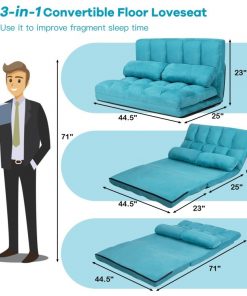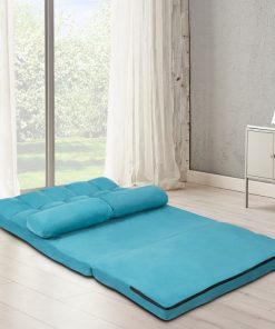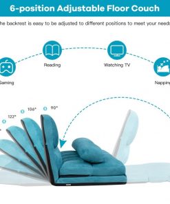 This multipurpose Faux Suede 5 Tilt Foldable Floor Sofa Bed Detachable Cloth Cover in Blue has 5 tilt positions with an adjusting range from 90°to 180°. It is very easy for you to find a perfect relaxing position while reading books, watching TV, or playing video games during your leisure time. The surface is made of composite suede, which is not only skin-friendly but also durable enough with the feature of wear-resistance. A soft and cozy seat provides you with a long-period comfortable experience. In addition, 2 soft pillows allow you to relax your neck or lumbar vertebra. Made by a premium steel frame, it is strong enough to support your body. From an upright position to a flat position, it can be served as a sofa or a bed to meet your different requirements. Suede texture makes it look superior and chic, perfectly matching your bedroom, living room, reading room, or balcony.