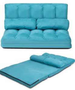 This multipurpose Faux Suede 5 Tilt Foldable Floor Sofa Bed Detachable Cloth Cover in Blue has 5 tilt positions with an adjusting range from 90°to 180°. It is very easy for you to find a perfect relaxing position while reading books, watching TV, or playing video games during your leisure time. The surface is made of composite suede, which is not only skin-friendly but also durable enough with the feature of wear-resistance. A soft and cozy seat provides you with a long-period comfortable experience. In addition, 2 soft pillows allow you to relax your neck or lumbar vertebra. Made by a premium steel frame, it is strong enough to support your body. From an upright position to a flat position, it can be served as a sofa or a bed to meet your different requirements. Suede texture makes it look superior and chic, perfectly matching your bedroom, living room, reading room, or balcony.