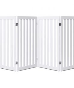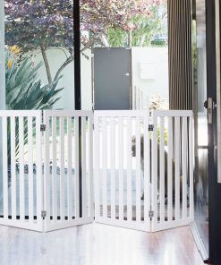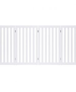 • Folding 4-Panel Dog Gate Pet Fence in White Wood Finish