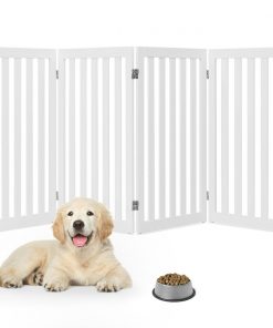 • Folding 4-Panel Dog Gate Pet Fence in White Wood Finish