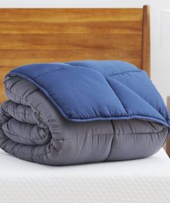 Perfect for curling up and staying warm this Full Size All Seasons Plush Grey/Navy Reversible Polyester Down Alternative Comforter provides everything and more all year round! This piece features baffle box stitch construction for a classic look that doubles as a handy way to keep the filling from sliding and lends this piece a breathable touch. This mid weight 275 gsm comforter has 4 corner tabs to keep your duvet in place and since it’s machine washable, a quick cycle is all it takes to have this piece looking its best.