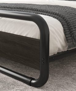This Full Heavy Duty Round Metal Frame Platform Bed with Black Wood Panel Headboard would be a great addition to your home. We made the whole bed with strong metal to make sure it can HOLD ANYTHING that could be in the bed. And we did not use normal head/footboard foot that normal bed did, which may hurt your floor. The special design of our headboard and footboard make the touch area between bed and floor bigger. So the bed could support more weight than other normal designed beds. More touch space could disperse the pressure that the bed gives to the floor, which will protect your floor better. Special noise free paddles everywhere to AVOID ANY NOISE. You now finally can have a strong but also quiet metal bed!