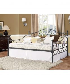 The Full size Metal Daybed Frame Contemporary Design Day Bed in Bronze Pewter Finish. Whether you are looking for extra seating in the living room or a sleeper for overnight guests, the metal daybed is the perfect fit. With round finial posts, a brushed metal frame, and traditional scrollwork, this daybed has character that will add instant charm to any room. Sturdily constructed, the bed features metal slats and supporting legs for added support and comfort. Additional foundation is not required. This full-size daybed sleeps two comfortably.