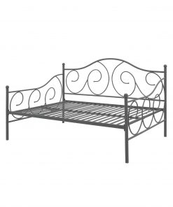 The Full size Metal Daybed Frame Contemporary Design Day Bed in Bronze Pewter Finish. Whether you are looking for extra seating in the living room or a sleeper for overnight guests, the metal daybed is the perfect fit. With round finial posts, a brushed metal frame, and traditional scrollwork, this daybed has character that will add instant charm to any room. Sturdily constructed, the bed features metal slats and supporting legs for added support and comfort. Additional foundation is not required. This full-size daybed sleeps two comfortably.