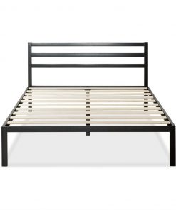 This Full Metal Platform Bed with Headboard and Wood Slats features wooden slats that provide strong support for your memory foam, latex, or spring mattress. 14 inches high with 12 inches of clearance under the frame for plenty of under bed storage space. The Platform Bed with headboard provides stylish and strong support for your mattress.