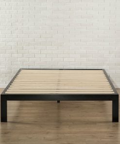 This Full Modern Black Metal Platform Bed Frame with Wood Slats features extra wooden slats that provide strong support for your memory foam, latex, or spring mattress. 14 inches high with 12 inches of clearance under the frame for plenty of under bed storage. Our patent pending quick snaptm technology allows the frame to be assembled in minutes without tools. Made with plastic feet to protect your floors, the quick snap 14 inch platform bed provides stylish and strong support for your mattress. 5-Year limited warranty.