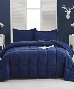 Full Navy Microfiber Baffle-Box 6-Piece Reversible Bed-in-a-Bag Comforter Set