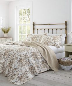 Full/Queen 3 Piece Bed-in-a-Bag Bohemian Tan Beige Floral Cotton Quilt Set