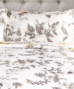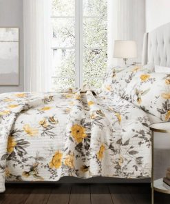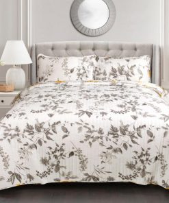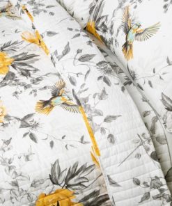 Bring all-season comfort to your bedroom with the 3 Piece Reversible Grey Yellow Floral Birds Cotton Quilt Set in Full/Queen Size. The soft cotton fabric features a gray and white botanical print detailed with yellow blooms and birds. It’s also reversible so you can give your room a fresh look any time of year. Vertical stitching and clean edges give this set a contemporary yet inviting charm.