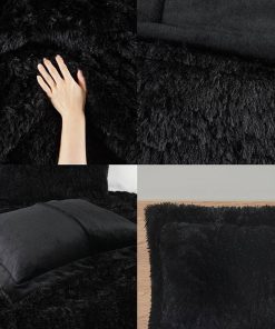 - Full/Queen Black Soft Sherpa Faux Fur 3-Piece Comforter Set with Pillow Shams