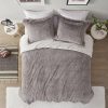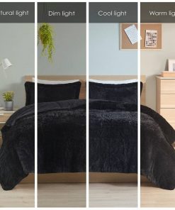This Full/Queen Black Soft Sherpa Faux Fur 3-Piece Comforter Set with Pillow Shams brings a soft contemporary update to your bedroom. The comforter and shams (1 in Twin/Twin XL) feature stylish shaggy faux fur that creates a soft fluffy texture and modern look. The solid plush reverse adds a soft and warm touch. Items in the set may come in a rolled or compressed packaging, which will need to be fluffed up or steam ironed before use to remove wrinkles.