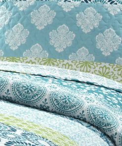 This 3 Piece Blues Bohemian Stripe Quilt Reversible Cotton Set in Full/Queen brightens your bedroom with aesthetic patterns and countless colors. From serene floral designs to twirling patterns, this pattern truly has a story to tell. From top to bottom, the colorful patterns brighten the room and add boho style to your bedroom space. The reverse side features a blue geometric print if you ever need a more toned down look. This quilt set is ideal for lovers of bohemian style, and looks great in a teenager’s bedroom, a guest bedroom, a college dorm or a first apartment. Care Instructions – Machine Wash Cold, Gentle Cycle, Only Non Chlorine Bleach When Needed, Tumble Dry Low, Cool Iron If Needed