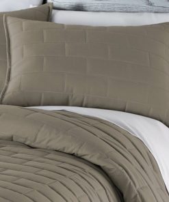Update your bedroom with this Full/Queen Modern Brick Stitch Microfiber Reversible 3 Piece Comforter Set in Taupe. Each piece showcases a brick-inspired stitched pattern for a bold look that sets the tone for a modern ensemble. Crafted from microfiber polyester, this fade- and stain-resistant set can be tossed into the washing machine and dryer for fuss-free upkeep. Accent Pillows NOT included.